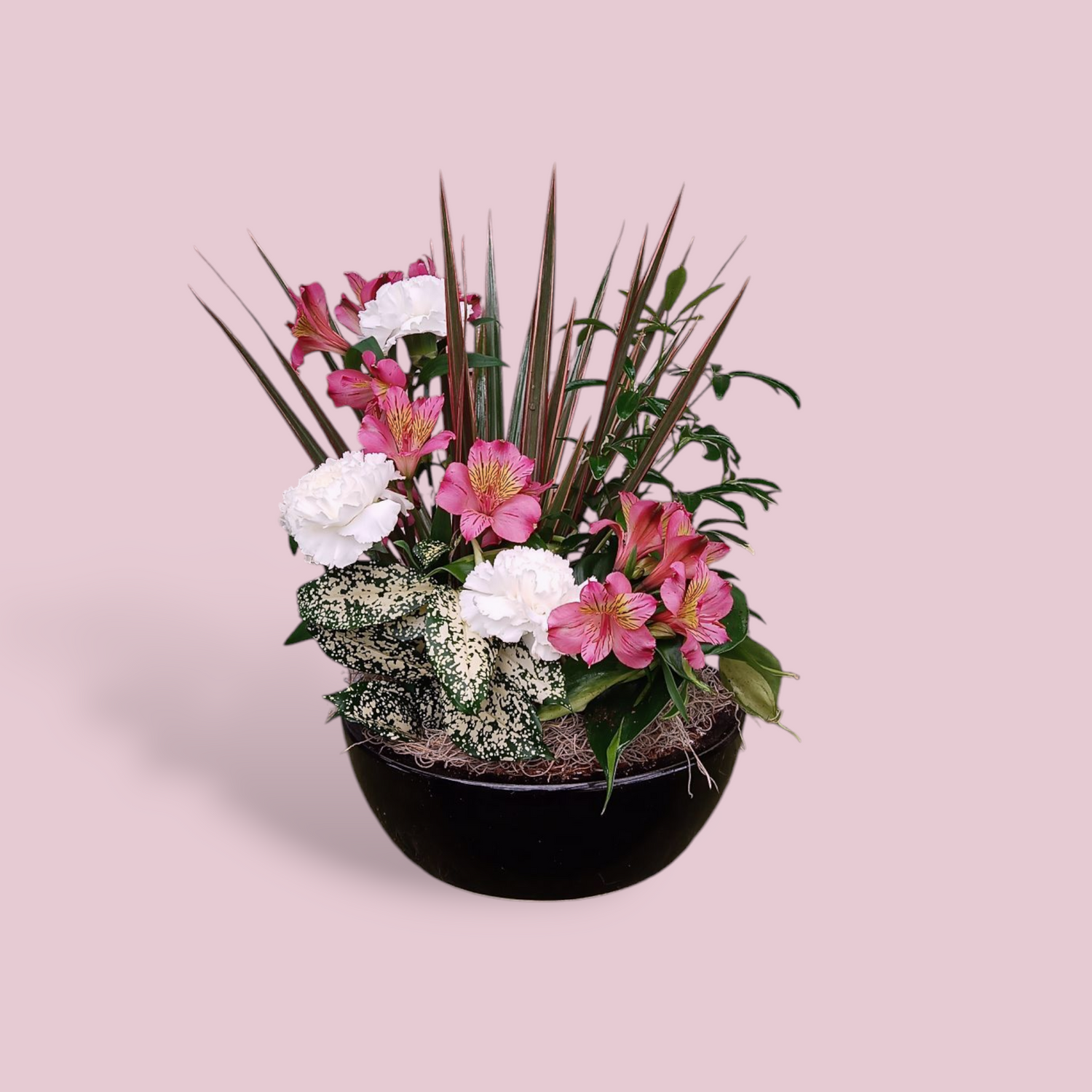 Ceramic Dish Garden w/ Fresh Cut Flowers